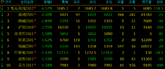 早盘收盘,海内主力合约涨跌不一。苯(ben)乙烯涨超4%,20号胶涨超3%,沪银、BR、橡胶涨超2%,氧化、菜粕、SC涨超1%;跌幅方面,集运欧线跌超6%,玻璃、纯碱跌超2%。